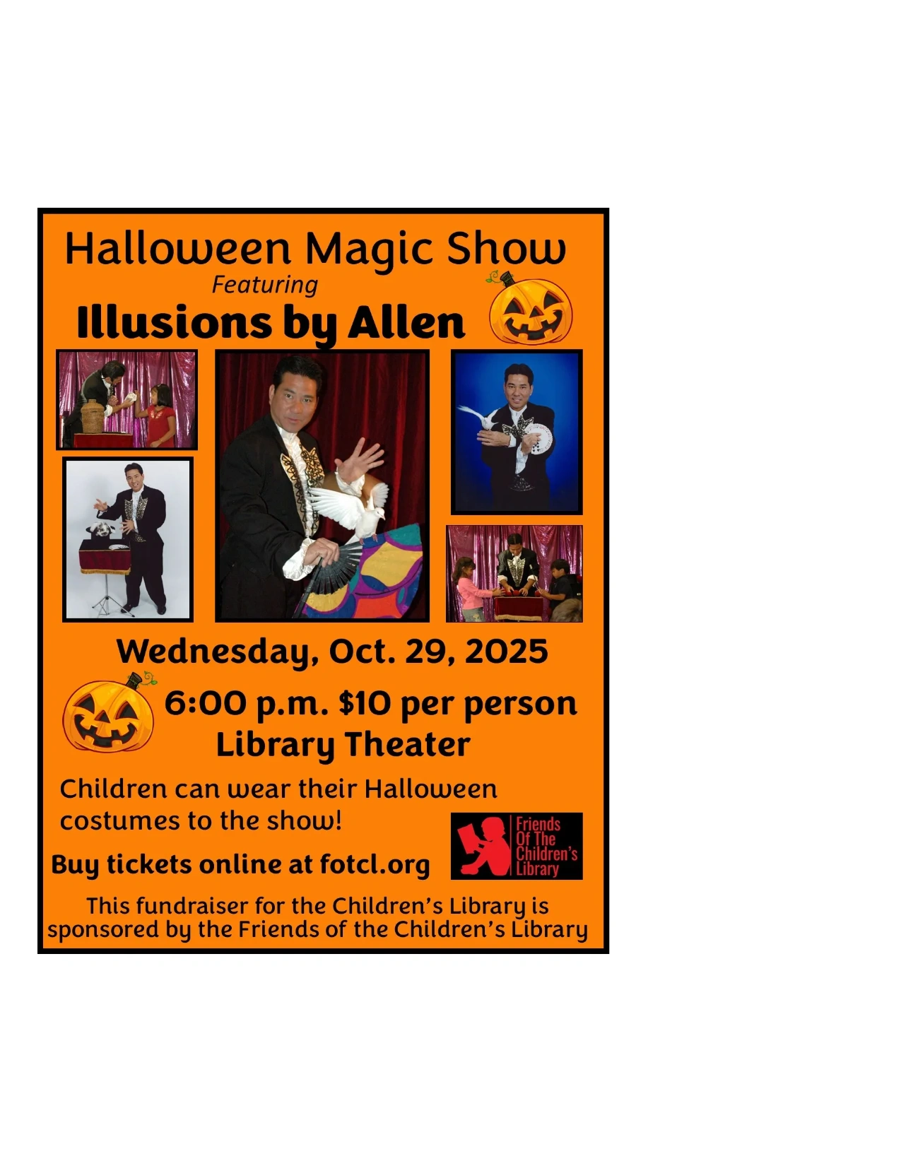 Magic Show with Allen Oshiro at 6:00 in the Library Theater. You will get a wristband.